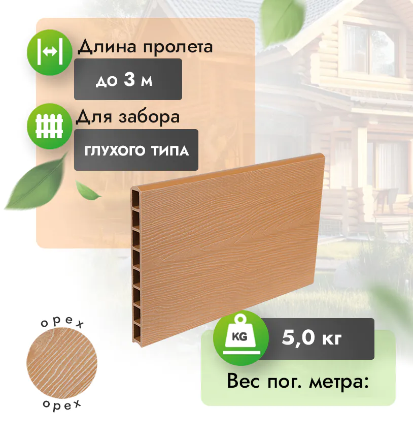 Наши заборные доски из ДПК выдерживают до 3318 кг/м2, влагостойкие, не требуют ухода.